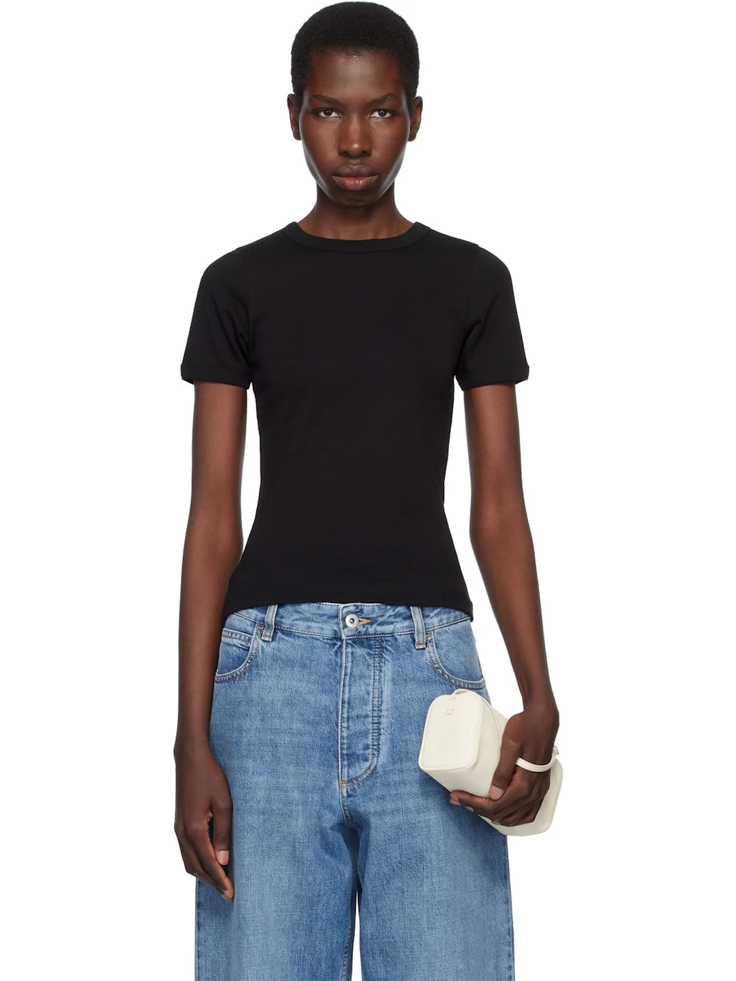 Organic cotton jersey T-shirt. · Rib-knit crewneck and cuffs · Central seam at back Supplier color: Black 100% organic cotton. Made in Portugal 252924F110031