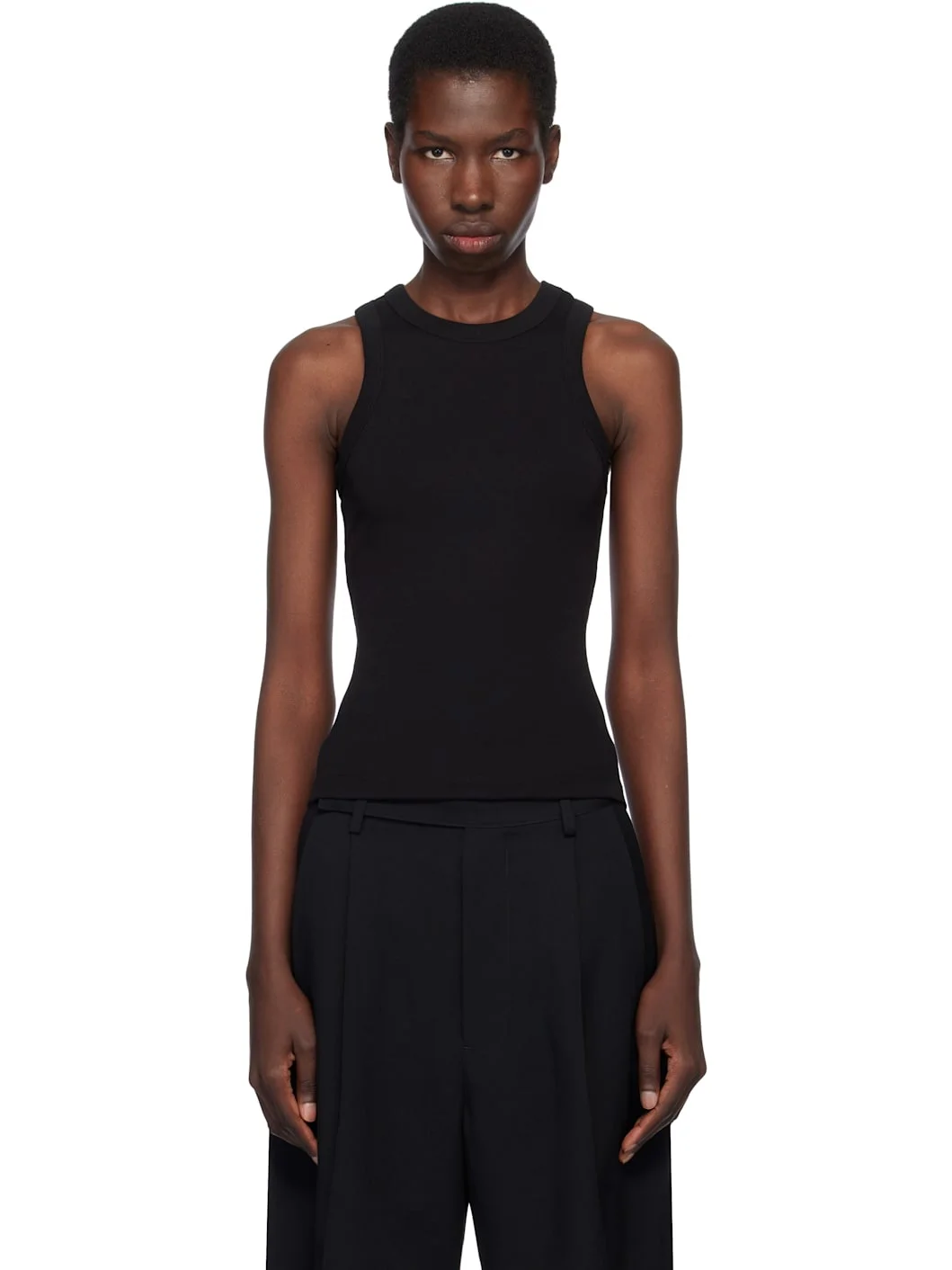 Organic cotton jersey tank top. · Rib-knit crewneck and armscyes · Central seam at racer back Supplier color: Black 100% organic cotton. Made in Portugal 252924F111021