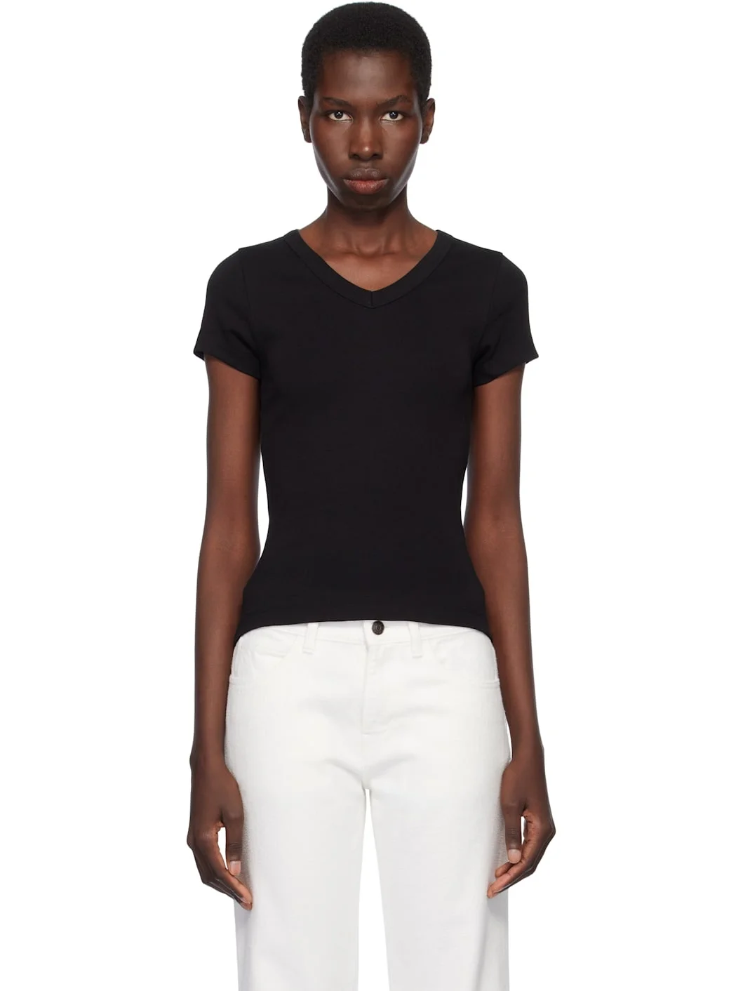 Organic cotton jersey T-shirt. · Rib-knit V-neck and cuffs · Central seam at back Supplier color: Black 100% organic cotton. Made in Portugal 252924F110024