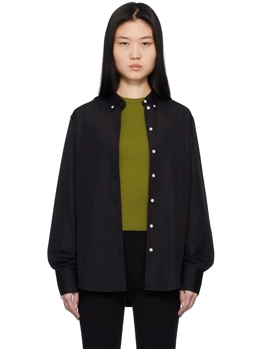 Relaxed-fit organic cotton poplin shirt. · Spread collar · Button closure · Shirttail hem · Pleated single-button barrel cuffs · Mother-of-pearl hardware Supplier color: Black 100% organic cotton. Made in Portugal 251924F109006