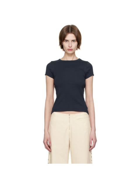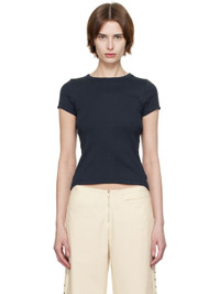Organic cotton ribbed jersey T-shirt. · Rib-knit crewneck · Central seam at back Supplier color: Navy 100% organic cotton. Made in Portugal 251924F110060