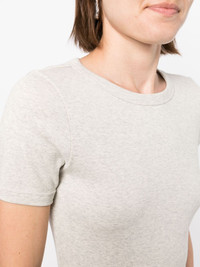 round-neck cotton T-shirt Cut to a slim-fit, this heather grey T-shirt from Flore Flore is spun from cotton in Portugal and elevated with a double-stitched cut-off seam at the rear. Highlights - Light grey - Cotton - Round neck - Short sleeves - Straight hem Imported Composition Cotton 100% SIZE & FIT Model measurements Height 5 ft 9 in(1.76 m) Bust/Chest 29.13 in(74 cm) Hips 33.07 in(84 cm) Waist 22.83 in(58 cm) FittingInformation Designed for a close fit throughout Made from a lightweight non-stretch fabric, this piece offers minimal elasticity when worn This piece fits true to size – take your usual size Measurement BUST 29.92 in(76 cm) LENGTH 20.86 in(53 cm) SLEEVE LENGTH 7.48 in(19 cm) Shoulder Width 12.59 in(32 cm)