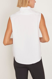The Flore Flore Casta Sleeveless Shirt will quickly become a staple in your wardorbe. This sleeveless button down shirt features a fitted silhouette in organic cotton. Wear yours with a sweater and trousers. FIT DETAILS - Button down shirt - Sleeveless - Fitted silhouette - Pleated back - 100% Organic Cotton from Albini Fabrics