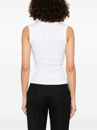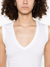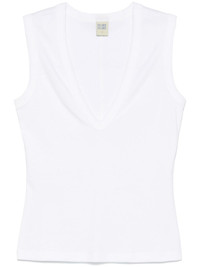 Dewi tank top Highlights - White - Ribbed v-neck - Sleeveless - Straight hem Imported Composition Organic Cotton 100% SIZE & FIT Model measurements Height 5 ft 10 in(1.79 m) Bust/Chest 31.88 in(81 cm) Hips 35.43 in(90 cm) Waist 23.62 in(60 cm) FittingInformation Designed for a close fit throughout Made from a midweight non-stretch fabric, this piece offers minimal elasticity when worn