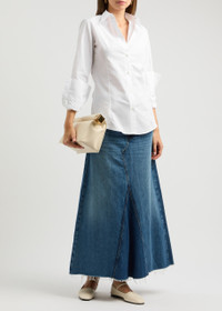 Info & Care Handmade FLORE FLORE cotton shirt Button-fastening cuffs, darted waist, curved hem, longer back hem; Button fastenings through front; 100% organic cotton; Machine wash; Size & Fit Length shoulder to hem: front: 27 inches/ 68.5cm; back: 28.5 inches/ 72.5cm; Midweight; Regular fit, slightly tapered at the waist Model is 5'9"/ 175cm and wears a size small;