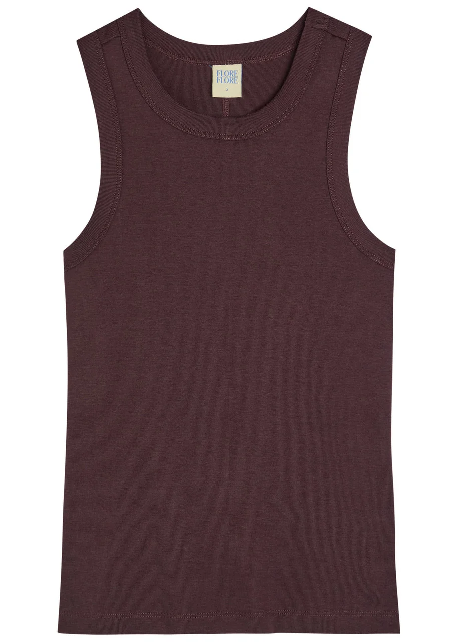 Info & Care FLORE FLORE cotton tank Round-neck, racer back, ribbed trims Slips on 100% organic cotton Machine wash Size & Fit Length shoulder to hem: 20 inches/ 51cm Midweight Slim;fit Model is 5'10"/ 178cm and wears a size small