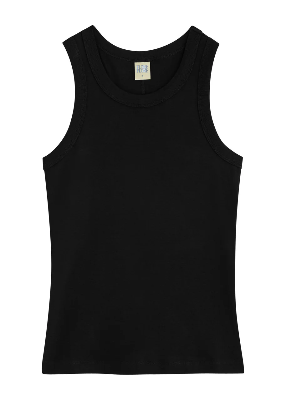 Info & Care FLORE FLORE cotton tank; Round-neck, racer back, ribbed trims Slips on; 100% organic cotton; Machine wash; Size & Fit Length shoulder to hem: 21 inches/ 53.5cm; Midweight; Slim fit Model is 5'9"/ 175cm and wears a size