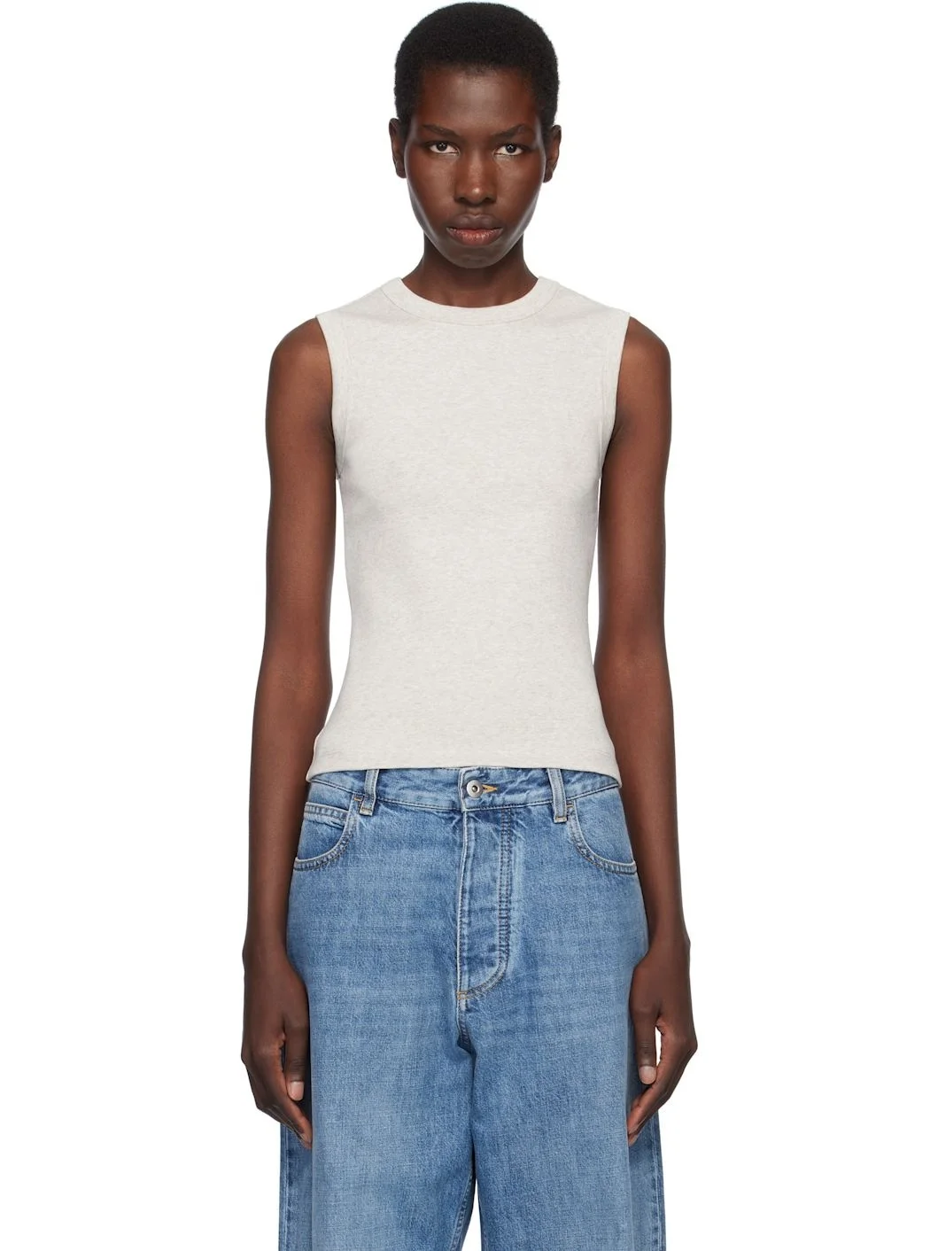 Organic cotton jersey tank top. · Rib-knit crewneck and armscyes · Central seam at back Supplier color: Heather grey 100% organic cotton. Made in Portugal 252924F111029