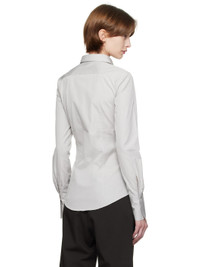 Handcrafted heavyweight organic cotton poplin shirt. · Slim-fit · Spread collar · Button closure · Darts at front and back · Shirttail hem · Pleats at single-button barrel cuffs · Mother-of-pearl hardware Supplier color: Grey 100% organic cotton. Made in Portugal 251924F109009