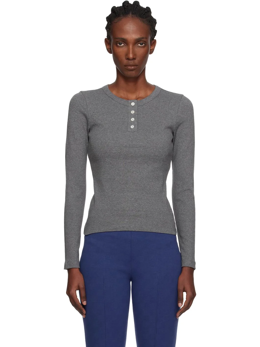 Organic cotton jersey henley. · Rib-knit crewneck · Four-button placket · Central seam at back · Mother-of-pearl hardware Supplier color: Melee grey 100% organic cotton. Made in Portugal 261924F110045