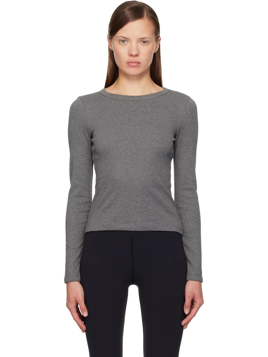 Organic cotton jersey T-shirt. · Rib-knit crewneck and cuffs · Central seam at back Supplier color: Melee grey 100% organic cotton. Made in Portugal 261924F110021