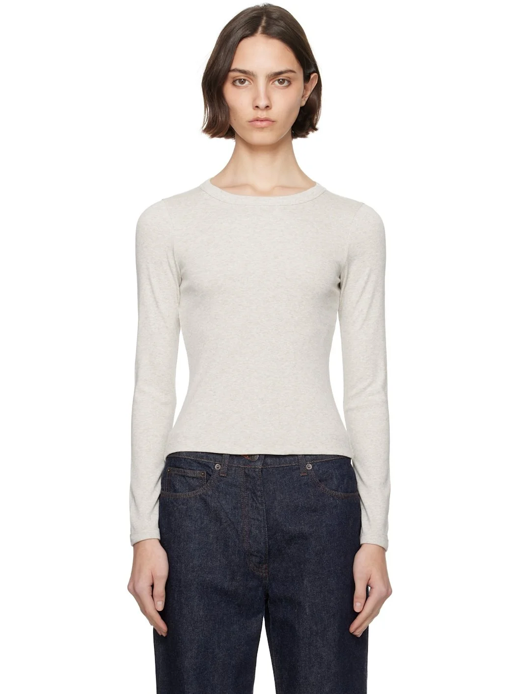 Organic cotton jersey T-shirt. · Rib-knit crewneck and cuffs · Central seam at back Supplier color: Heather grey 100% organic cotton. Made in Portugal 252924F110012