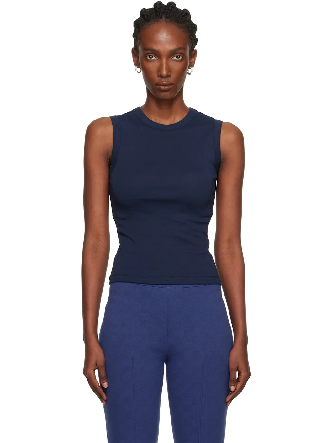 Organic cotton jersey tank top. · Rib-knit crewneck and armscyes · Central seam at back Supplier color: Navy 100% organic cotton. Made in Portugal 261924F111027