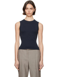Organic cotton jersey tank top. · Rib-knit crewneck and armscyes · Central seam at back Supplier color: Navy 100% organic cotton. Made in Portugal 252924F111030