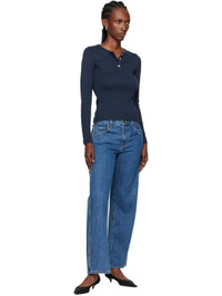Rib-knit organic cotton T-shirt. · Crewneck · Four-button placket · Central seam at back · Mother-of-pearl hardware Supplier color: Navy 100% organic cotton. Made in Portugal 252924F110064