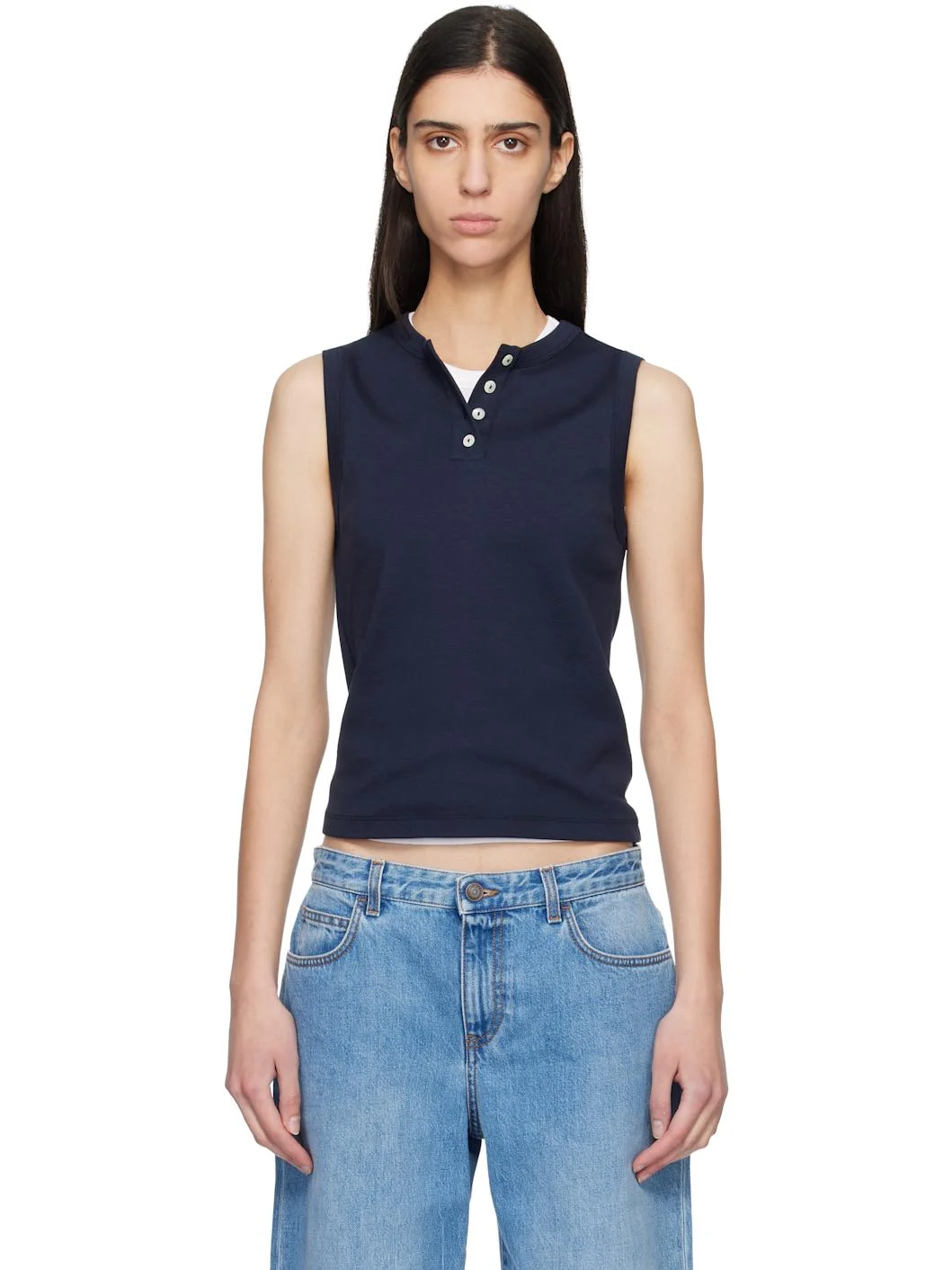 Organic cotton jersey tank top. · Rib-knit crewneck and armscyes · Four-button placket · Central seam at back · Mother-of-pearl hardware Supplier color: Navy 100% organic cotton. Made in Portugal 261924F111072