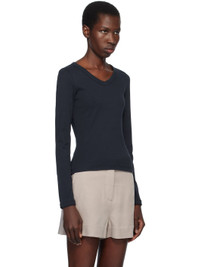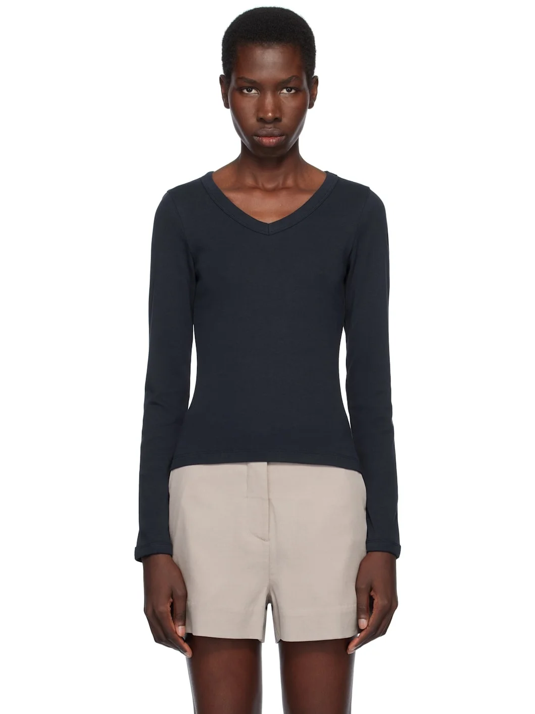 Organic cotton jersey T-shirt. · Rib-knit V-neck and cuffs · Central seam at back Supplier color: Navy 100% organic cotton. Made in Portugal 252924F110018