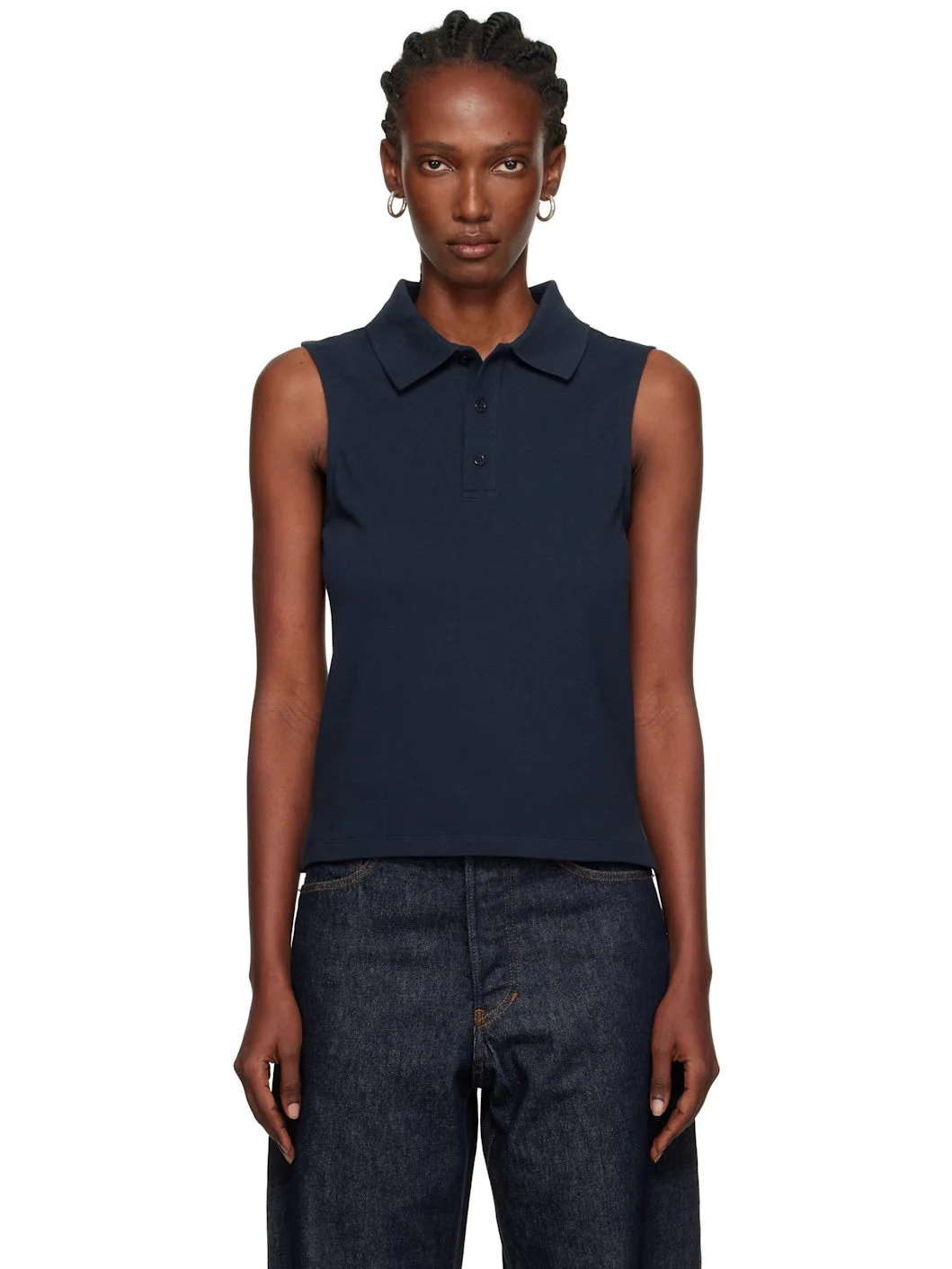 Organic cotton pique polo. · Rib-knit spread collar · Three-button placket · Vented side seams · Mother-of-pearl hardware Supplier color: Navy 100% organic cotton. Made in Portugal 252924F108001