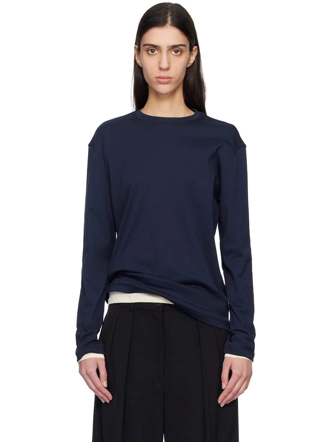 Loose-fit organic cotton jersey T-shirt. · Rib-knit crewneck · Central seam at back Supplier color: Navy 100% organic cotton. Made in Portugal 261924F110084