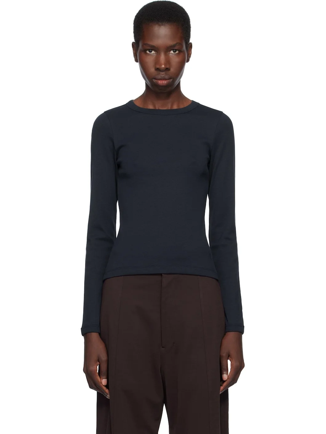 Organic cotton jersey T-shirt. · Rib-knit crewneck and cuffs · Central seam at back Supplier color: Navy 100% organic cotton. Made in Portugal 252924F110013