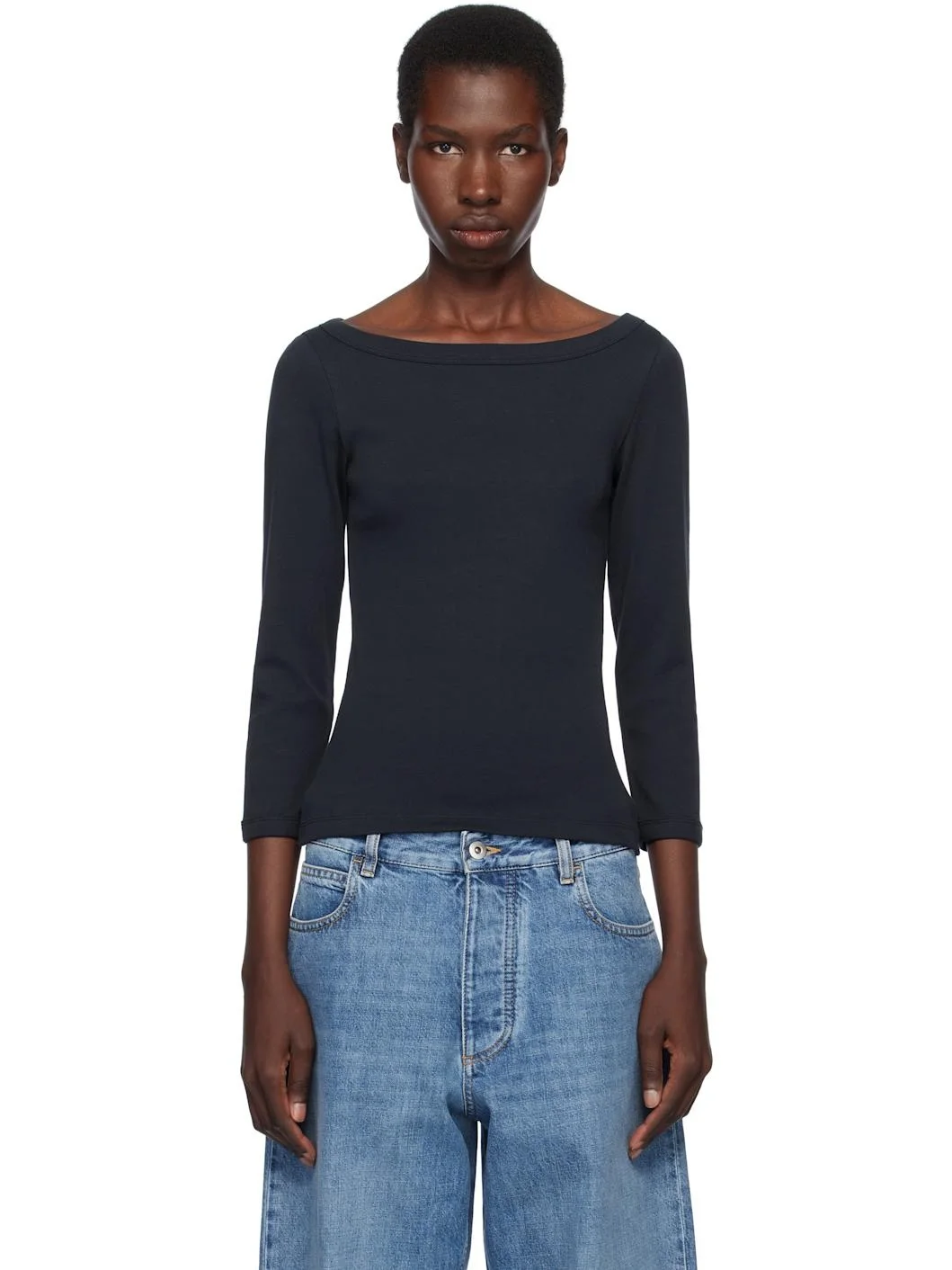 Organic cotton jersey T-shirt. · Rib-knit boatneck and cuffs · Three-quarter sleeves · Central seam at back Supplier color: Navy 100% organic cotton. Made in Portugal 252924F110004