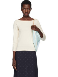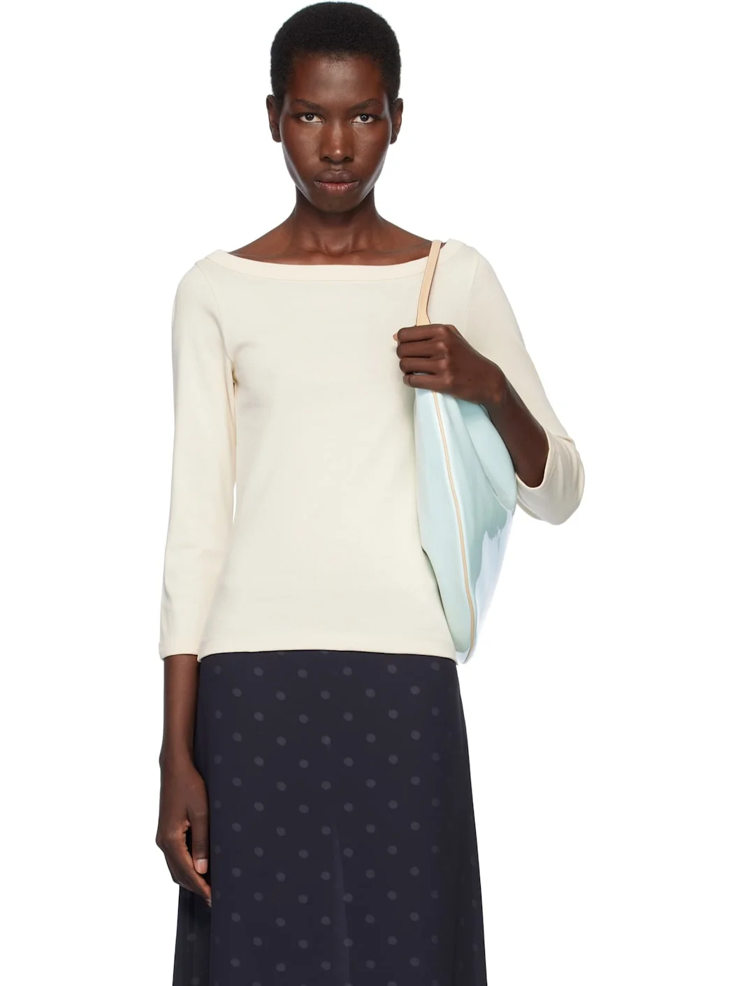 Organic cotton jersey T-shirt. · Rib-knit boatneck and cuffs · Three-quarter sleeves · Central seam at back Supplier color: Off white 100% organic cotton. Made in Portugal 252924F110002
