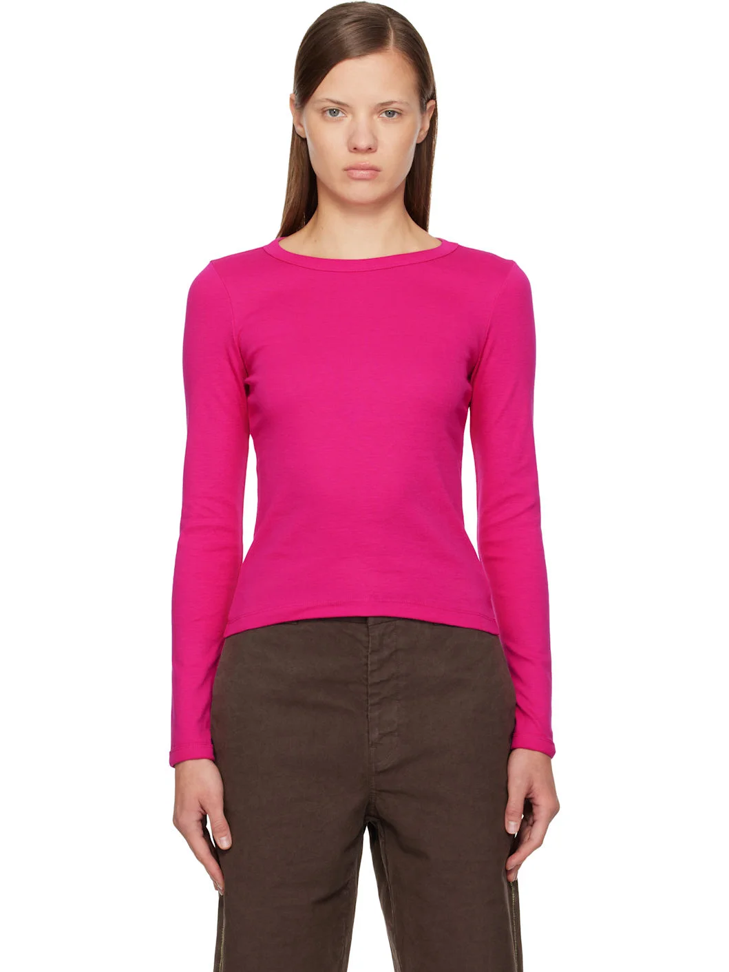Organic cotton jersey T-shirt. · Rib-knit crewneck and cuffs · Central seam at back Supplier color: Fuchsia 100% organic cotton. Made in Portugal 261924F110023