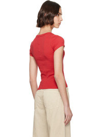Organic cotton jersey T-shirt. · Rib-knit crewneck · Central seam at back Supplier color: Raspberry 100% organic cotton. Made in Portugal 252924F110036