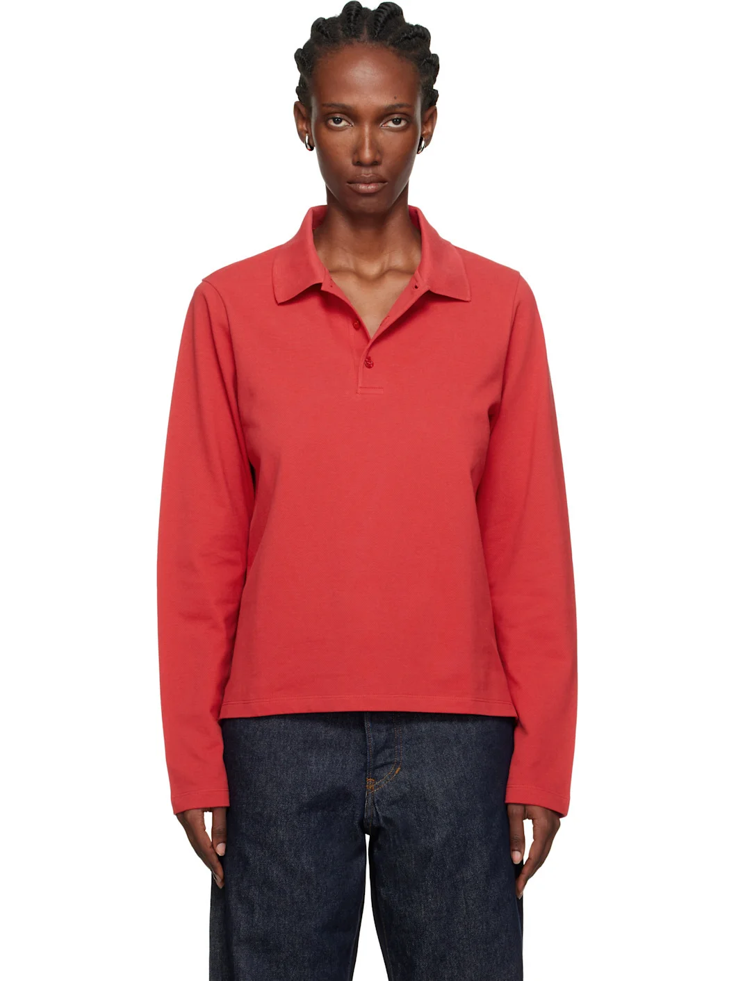 Organic cotton jersey polo. · Rib-knit spread collar · Three-button placket · Vents at hem · Mother-of-pearl hardware Supplier color: Raspberry 100% organic cotton. Made in Portugal 252924F108008