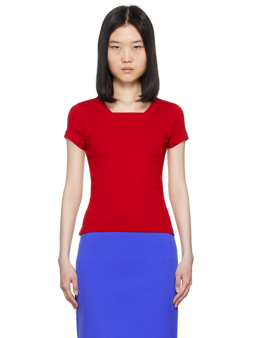 Organic cotton jersey T-shirt. · Rib knit V-neck · Central seam at back Supplier color: Red 100% organic cotton. Made in Portugal 242924F110054