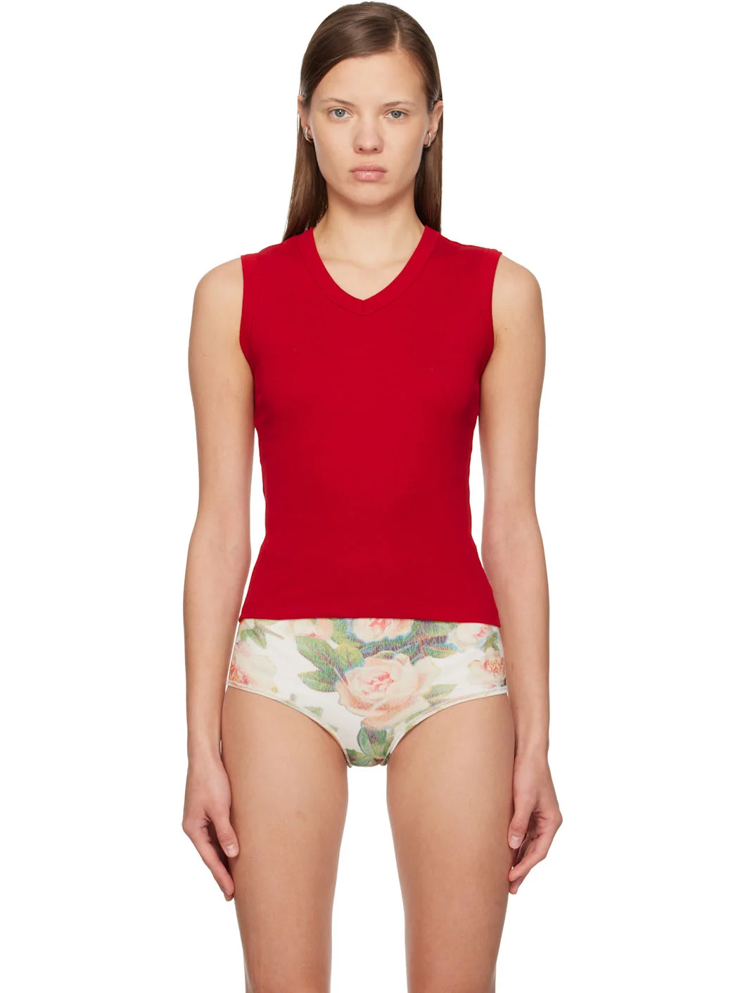Organic cotton jersey tank top. · Rib-knit V-neck and armscyes · Central seam at back Supplier color: Red 100% organic cotton. Made in Portugal 261924F111009