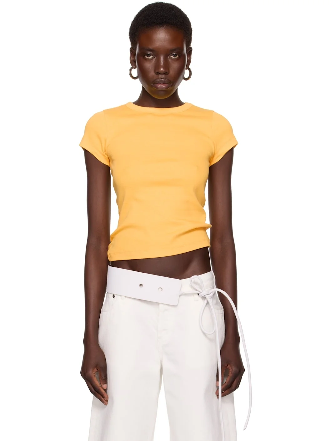 Organic cotton jersey T-shirt. · Rib-knit crewneck · Central seam at back Part of the exclusive SSENSE HEAT capsule. Supplier color: Mango 100% organic cotton. Made in Portugal 252924F110047