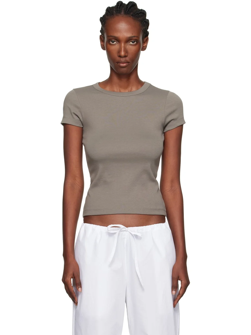 Rib-knit organic cotton T-shirt. · Crewneck · Cropped hem · Central seam at back Supplier color: Mushroom 100% organic cotton. Made in Portugal 252924F110078