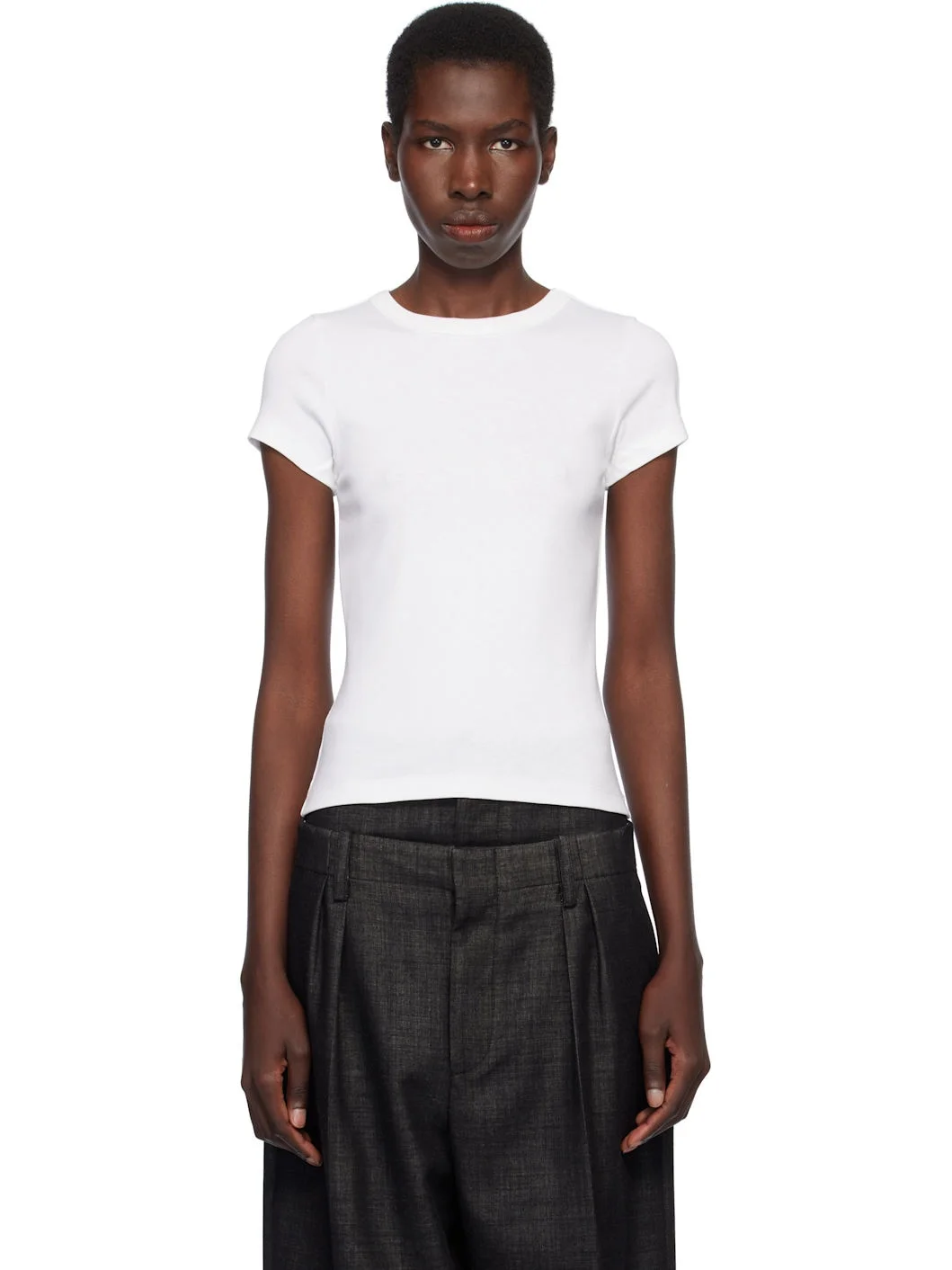 Organic cotton jersey T-shirt. · Rib-knit crewneck · Central seam at back Supplier color: White 100% organic cotton. Made in Portugal 252924F110040
