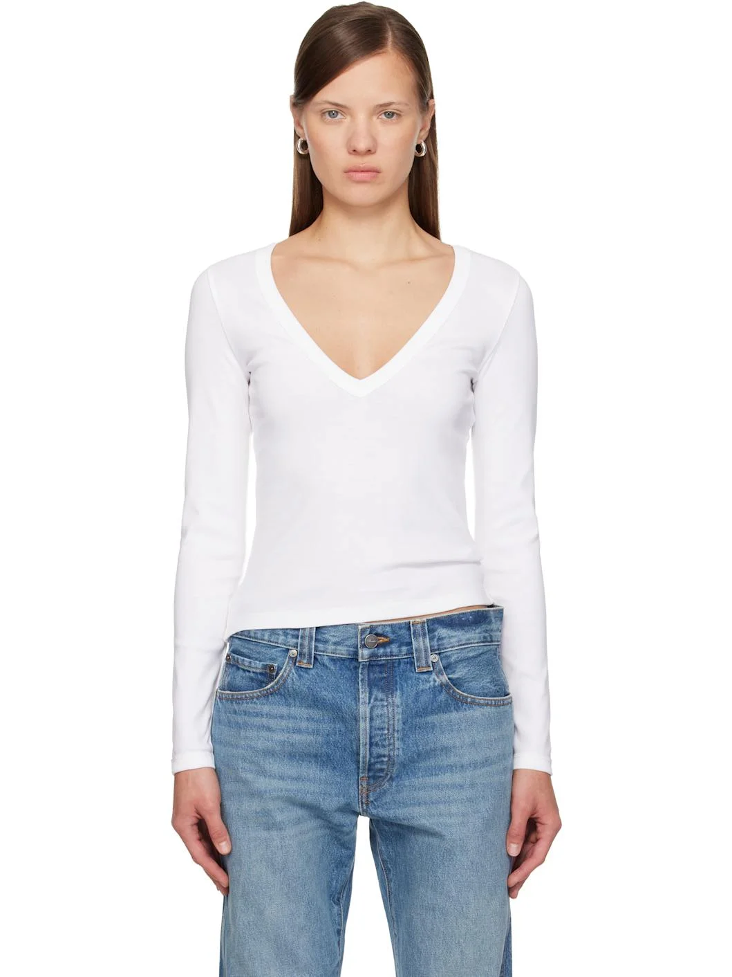 Organic cotton jersey T-shirt. · Rib-knit plunging V-neck and cuffs · Central seam at back Supplier color: White 100% organic cotton. Made in Portugal 261924F110054