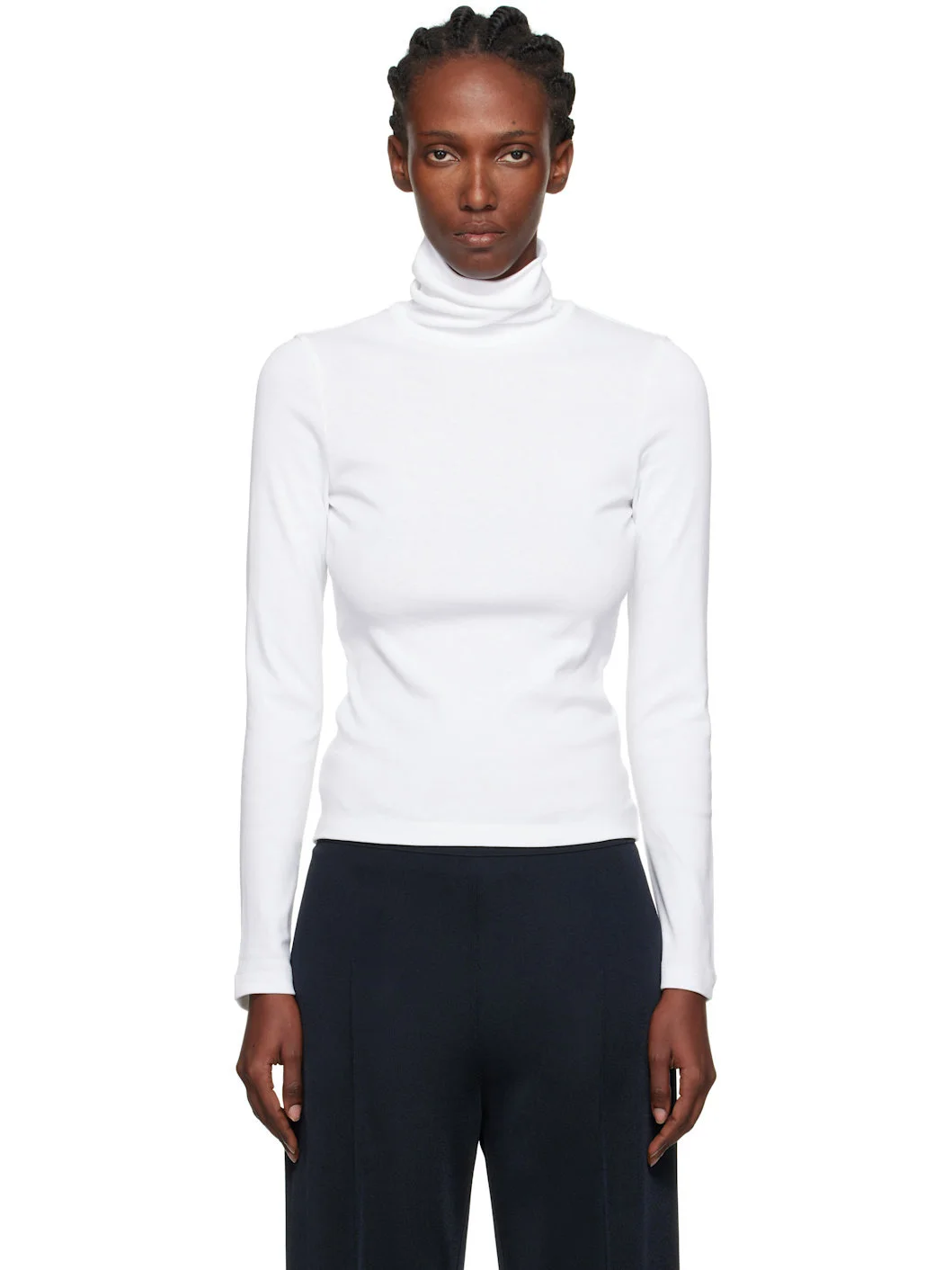 Rib-knit organic cotton turtleneck. · Lightweight · Central seam at back Supplier color: White 100% organic cotton. Made in Portugal 252924F099005