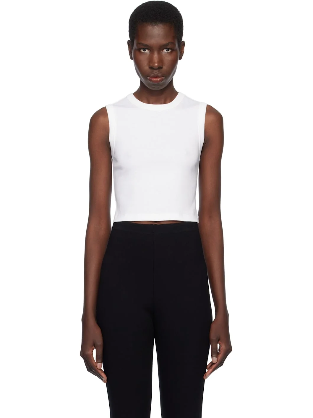 Organic cotton jersey tank top. · Rib-knit crewneck and armscyes · Cropped hem · Central seam at back Supplier color: White 100% organic cotton. Made in Portugal 252924F111036