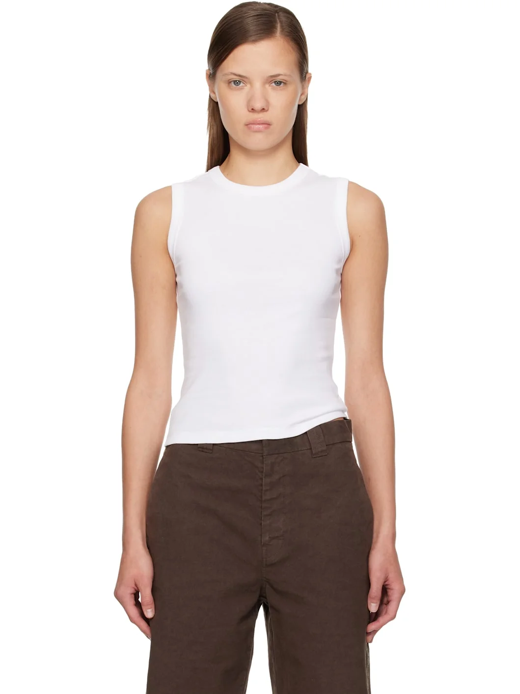 Organic cotton jersey tank top. · Rib-knit crewneck and armscyes · Central seam at back Supplier color: White 100% organic cotton. Made in Portugal 261924F111023