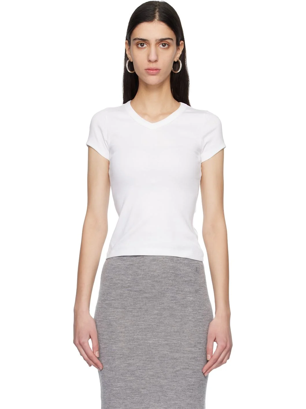 Organic cotton jersey T-shirt. · Rib-knit V-neck · Central seam at back Supplier color: White 100% organic cotton. Made in Portugal 261924F110089