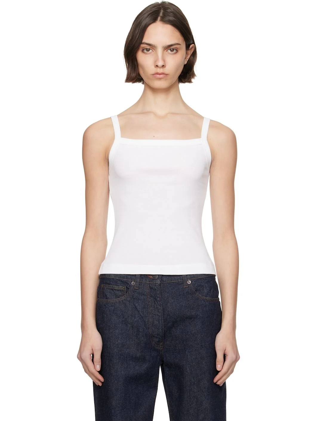Organic cotton jersey camisole. Rib-knit square neck and shoulder straps. Supplier color: White 100% organic cotton. Made in Portugal 252924F111012