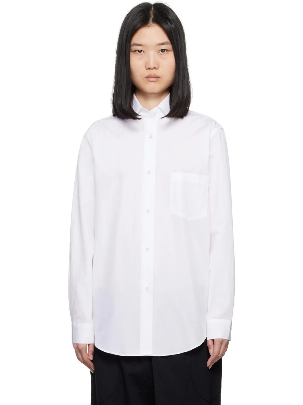 Relaxed-fit organic cotton poplin shirt. · Spread collar · Button closure · Patch pocket · Shirttail hem · Single-button barrel cuffs · Twin pleats at back yoke · Mother-of-pearl hardware Supplier color: White 100% organic cotton. Made in Portugal 242924F109000