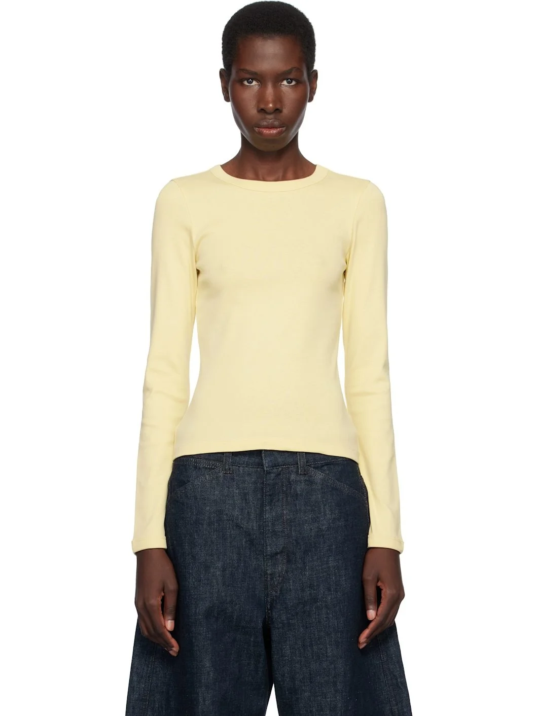 Organic cotton jersey T-shirt. · Rib-knit crewneck and cuffs · Central seam at back Supplier color: Butter 100% organic cotton. Made in Portugal 252924F110009