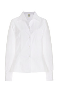 Flore Flore’s timeless cotton staples are crafted with clean, simple lines and flattering cuts—made to be worn every day. A slim-fitted shirt with a voluminous fold-over collar, single front pocket, straight hem, and darts on the front and back with two pleats in the back. Crafted from structured, heavier-weight organic cotton from Albini in Bergamo, Italy. Can be worn alone or layered. PRODUCT DETAILS - Fall '24 - Button fastenings through front - Composition: ECO-Gatsby cotton - Machine wash - Imported SIZE & FIT - Our model is wearing a size Small - Model is 5'9.5" with a 30.5" bust, 23" waist, and 34.5" hip - Designed for a slim fit