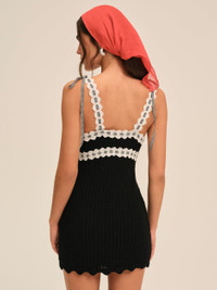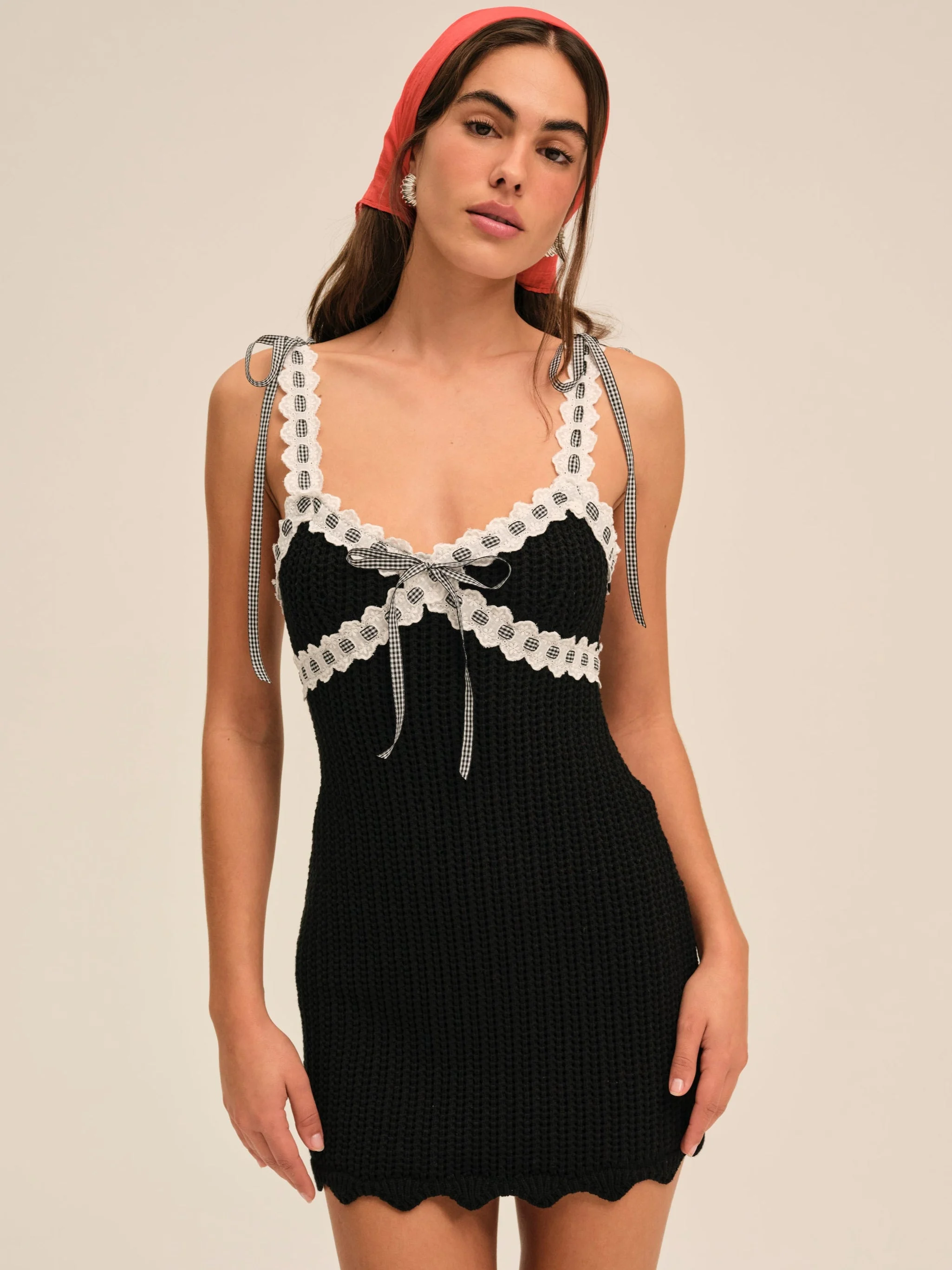 The Becka black crochet dress is designed for all your vacation moments—from open-air drives, and long, lazy afternoons by the water and every moment in between. Cut to a mini length, this knit dress is defined by its scalloped shoulder and grosgrain ribbon details at the shoulder straps, neckline, and under-bust. Fit Notes - True to size - Relaxed fit Style Notes - Fully lined - Pull-on style - Partial front button detail - Functional ties at shoulder and bust Fabric + Care - Crafted in 74% acrylic, 26% nylon - Contrast is made of 80% viscose, 20% polyester - Contrast is made of 100% polyester - Eco dry clean is recommended to avoid harmful chemicals like "perc".