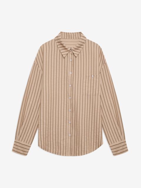 For a look that feels like home, the Bella striped crop top was designed for lounging, layering, and everything in between. Crafted in a cream and brown stripe, this sleep top spotlights a deep scooped neckline, cap sleeves, functional button-front opening, and is adorned with lace trims throughout. Pair with the Bella Wide Leg Pant for the complete pajama set. Style Notes - Unlined Fabric + Care - Crafted in 100% polyester - Lace is made of 90% polyamide, 10% elastane - Machine wash cold - Only non-chlorine bleach - Tumble dry low - Cool iron - Do not dry clean