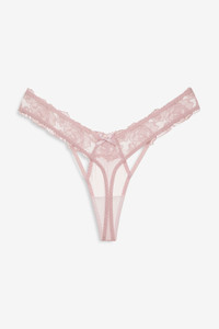 Fall in love with the Blissful Blooms pink thong—thong lingerie crafted in chiffon and mesh with embroidered floral details. Finished with a ruched front and satin bow, it's the perfect match to the Blissful Blooms Underwire Bra. Style Notes - Unlined - Elasticated Leg-line Fabric + Care - Crafted in 100% polyester - Back is made of 88% polyamide, 12% elastane - Lace is made of 100% polyamide - Gusset is made of 100% modal - Hand wash cold - Only non-chlorine bleach - Do not wring or twist - Line dry - Do not iron - Do not dry clean