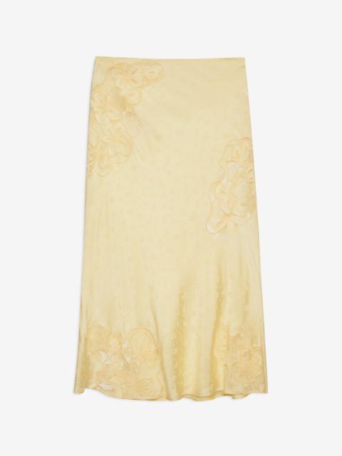 Perfect for summer soirees, the Blushing Rose floral midi skirt is crafted in a floral-embroidered tulle. This pink midi skirt features floral appliques, ruffled trims, and a center-front tying bow. Pair this tulle midi skirt with the Blushing Rose Bra Top for a complete co-ord set. Style Notes - Lined in tulle - Satin contrast elasticated waistband Fabric + Care - Crafted in 100% polyester - Lining is made of 100% recycled polyester - Contrast is made of 100% polyester - Dry clean only