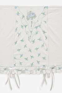 An ode to rolling fields and blooming wildflowers, the Budding Blossom eyelet skirt is crafted in a floral-printed white eyelet that exudes spring serenity. Adorned with decorative satin bows, delicate picot elastic, and a ruffled trim—this lingerie skirt is finished with a center-front mesh panel with rose applique and functional garter clips. Style Notes - Unlined - Garter clips set behind skirt at the princess points Fabric + Care - Crafted in 89% polyester, 11% elastane - Embroidery is made of 100% polyester - Mesh is made of 88% polyamide, 12% elastane - Hand wash cold - Line dry - Do not dry clean