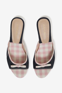 Step into the Cassandra denim slingback heels for your next summer soiree. These open toed kitten heels are crafted in a nostalgic dark navy denim and lined with a contrast pink gingham with center-front bow. Style Notes - Upper denim material - Lined in PU - Heel height: 70mm Fabric + Care - Upper - Denim - Trim - Gingham forefoot & bow - Lining - PU - Sole - German