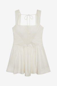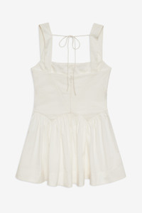 Perfect for days spent lakeside, the Chloe white mini dress is the perfect fit and flare style for summer. This sundress is crafted in cotton poplin with boning a the bodice and scalloped details at the waist. Style Notes - Lined - Invisible zipper at the center-back Fabric + Care - Crafted in 97% cotton, 3% spandex - Machine wash cold - Lay flat to dry - Cool iron ok - Ok to dry clean